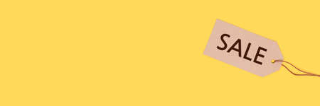 Close-up of a black sale tag on a bright yellow background, ideal for Black Friday.