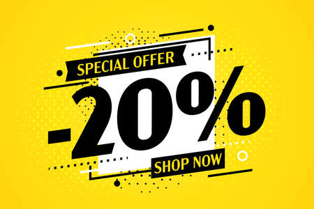 20 percent off special offer. Yellow banner template with motion design vector illustration. Special sale offer discount for online shopping with price clearance