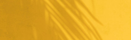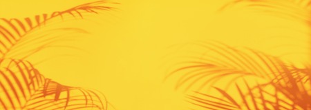 Summer travel concept. Shadow of exotic palm leaves is laying on pastel yellow wall