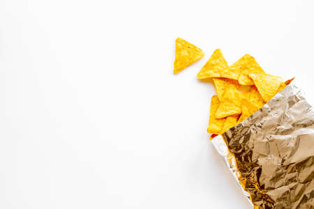 Crispy mexican nachos chips salty.Snacks Fast food or junk food snacks unhealthy concept.