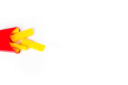 Toy Fast Food In Miniature. Small model of french fries. Fast food concept