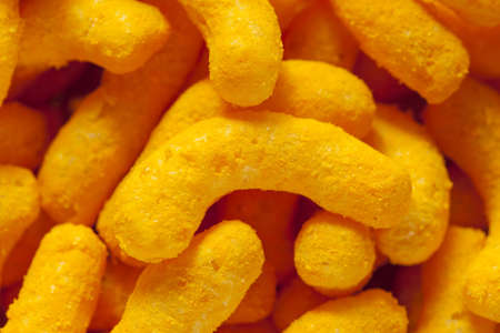Unhealthy Orange Puffy Cheese Crisps against a background