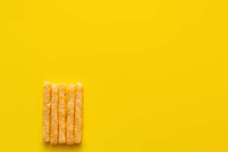 Yellow corn sticks on a yellow background. High quality photo