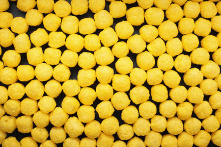 Cheesess balls and snacks, in large amounts of quantities, even backgrounds.