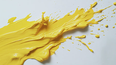 A vibrant yellow paint stroke on a white canvas showcases the beauty of color and texture, perfect for artistic projects and creative designs.