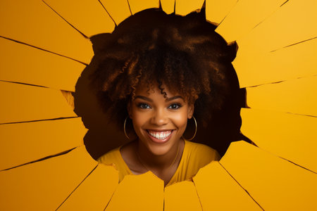 Bask in the sunshine of positivity as a young African man exudes a radiant smile against a vibrant yellow background. His joy brings warmth to the scene.