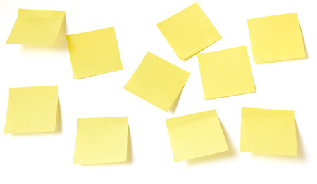 Reminder yellow notes isolated on white background
