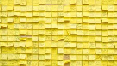 Multiple sheets sticky notes on the wall
