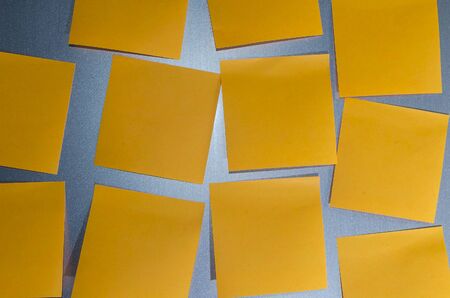 Yellow sticky notes on a yellow wall. The concept of reminder.