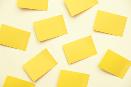top view of yellow sticky notes isolated on beige