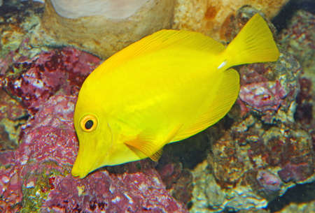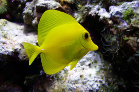 Yellow tang fish, Zebrasoma flavenscens, is a saltwater aquarium fish that is found in the Pacific and Indian Oceans in the wild
