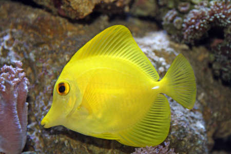 The yellow tang, Zebrasoma flavescens, is popular marine aquarium fish