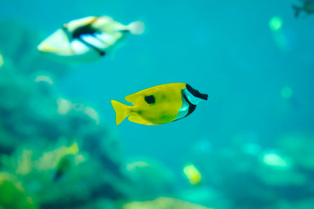 Yellow tropical fish and swim in the clear warm sea waters