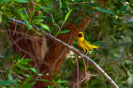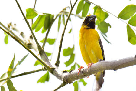 Beautiful Asian golden weaver perched on a branch.
