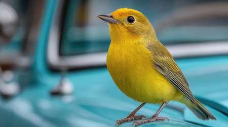 Small Yellow Bird Perched on Window Sill