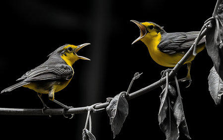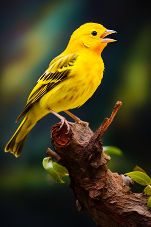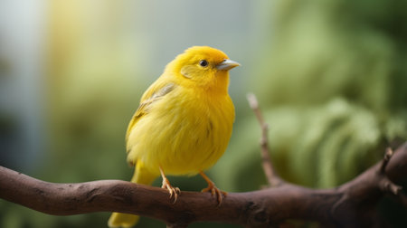 A bright yellow canary singing melodiously. AI generated illustration
