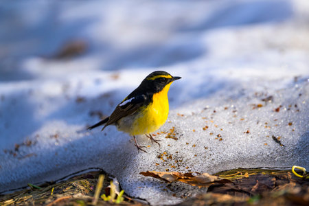 Narcissus Flycatcher male on snow