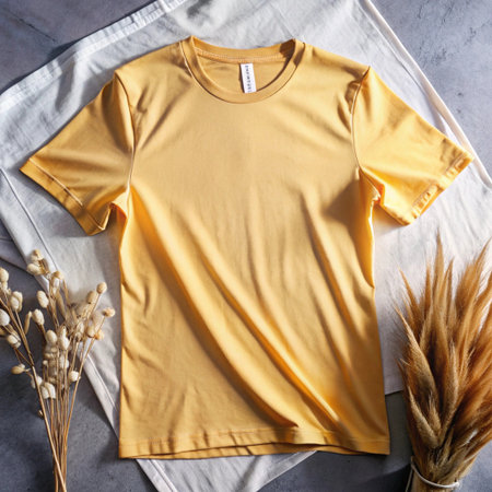 yellow T-shirt can be used as design template, yellow t shirt isolated mockup top view, empty t-shirt background shirt mockup empty