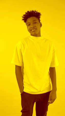 Duotone or half tone portrait of young african american man in studio looking at camera