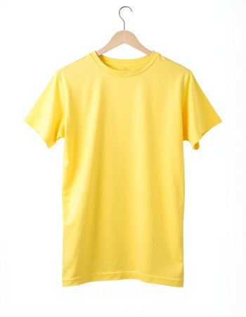 Yellow t-shirt on a hanger photo realistic illustration - Generative AI.