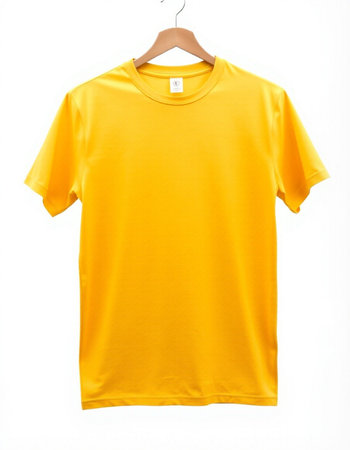 Yellow t-shirt on hanger against yellow background inside studio.generative AI
