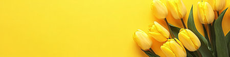 yellow tulips in full bloom stand out against a minimalist yellow background, creating a visually striking image. the crisp graphic design enhances the vibrant colors of the flowers, making them the focal point of the photo. ai generated