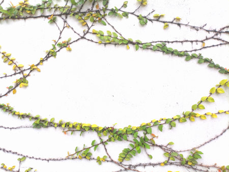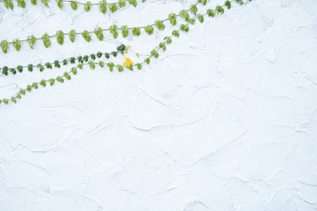 Ivy on white wall background with copy space for text or image