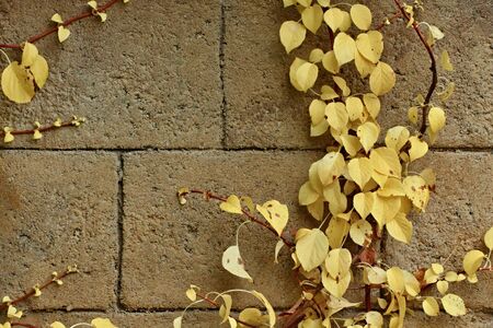 Brick texture with yellow leaves