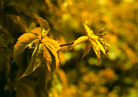 Autumn branch close up lit rays evening sun