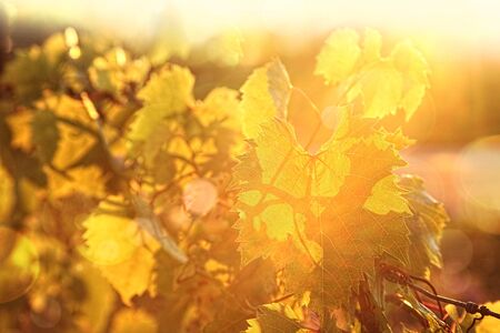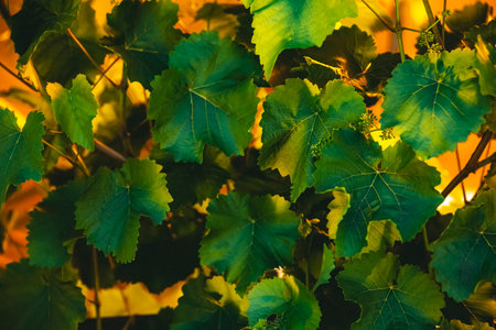 Closeup of grape vines at sunset