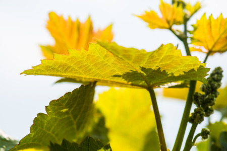 vitis vinifera leaves on a background of the blue sky with clouds