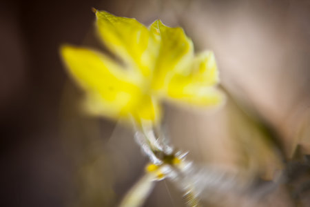 Macro shot of bitter gourd flowers or karala flowers with shallow depth of field and blurry background.