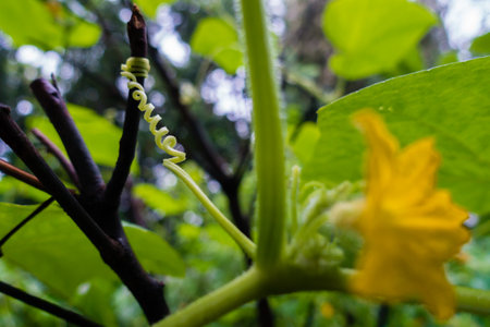 Close-up of a green tendril on a cucumber. Macro
