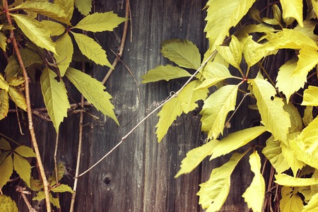 background of the old vintage wood with wild grapes curly ivy