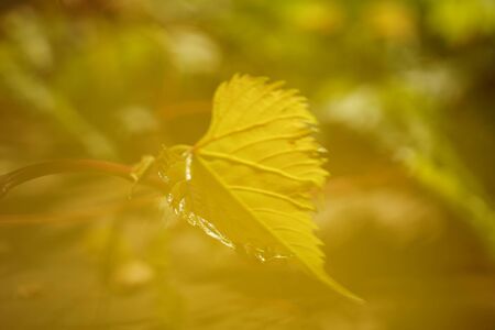 young grape leaf in a sunny garden closeup, green natural tinted