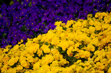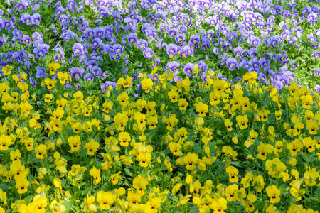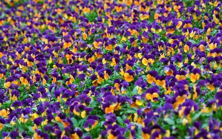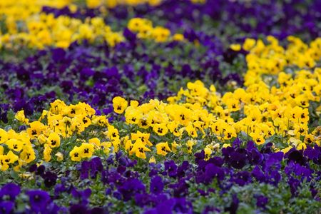 Field of beautiful violet and yellow pancies