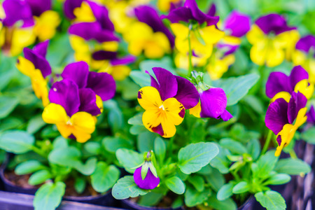 mixed colors of pansy flowers in spring garden