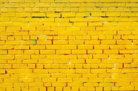 Wall of red brick.Masonry has a peculiar texture.The wall is painted in yellow.