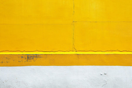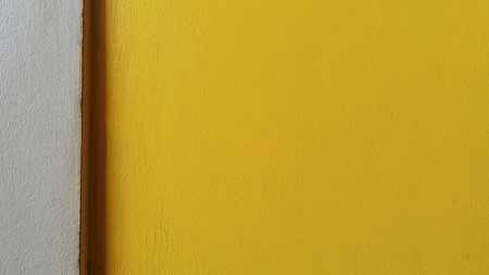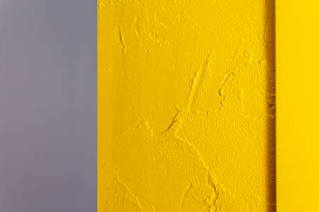 Yellow and grey concrete wall as texture or background. Geometric style. Plastered surface. Good-quality walls painting.