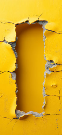 The wall is made of stone blocks of yellowed color with scuffs and damage. Yellow background with brick texture.
