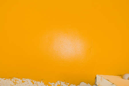 Abstract wall background. Colorful yellow wall began to paint with blue color