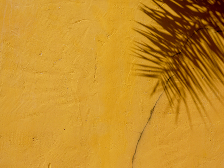 Shadow of leaves on a yellow wall in the background.