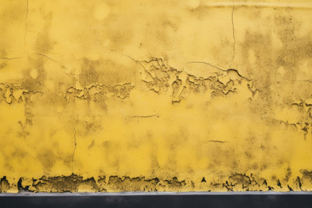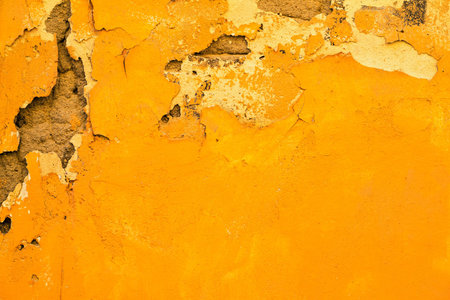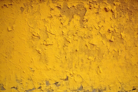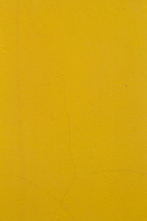 a textured wall surface painted a rich bright yellow colour with surface cracks
