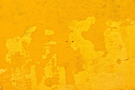 Textured wall with peeling yellow paint. Old building. Beautiful abstract background. Large size photo in good quality.