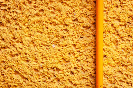 a yellow cement wall and a pipe of the same color, background, texture.
