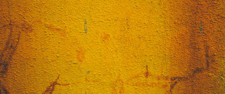 Rusty yellow painted steel metal. Stained rusty painted metal surface with flakes