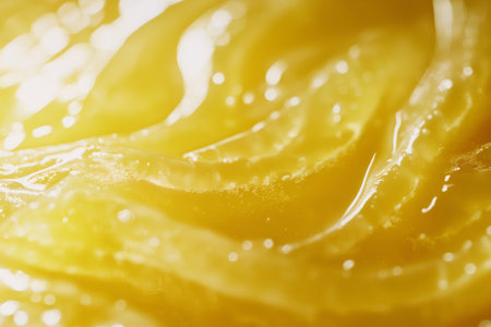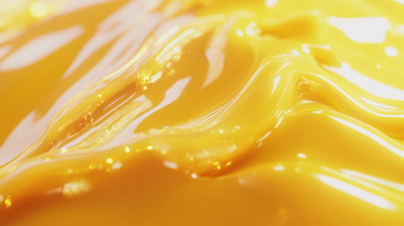 This image features a smooth and glossy yellow liquid surface, showcasing elegant waves and reflective qualities. Ideal for food-themed creativity and design.