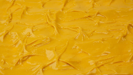 A vibrant yellow smooth texture and dynamic movement of mustard as background.
