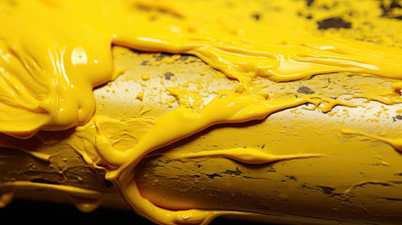 Bold golden yellow paint skillfully applied on textured surface radiates creativity.