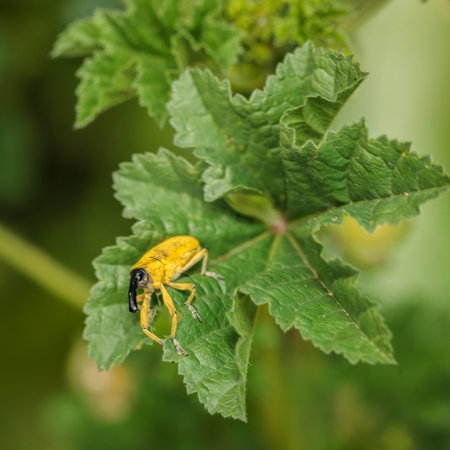 Gold-dust weevil standing on a vibrant green leaf, showcasing the beauty of nature in a detailed close-up